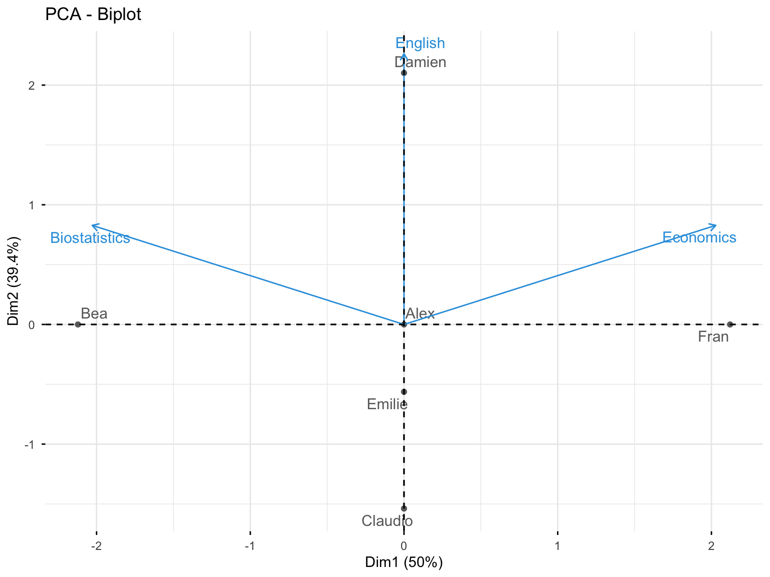 - Biplots (variables and individuals together)