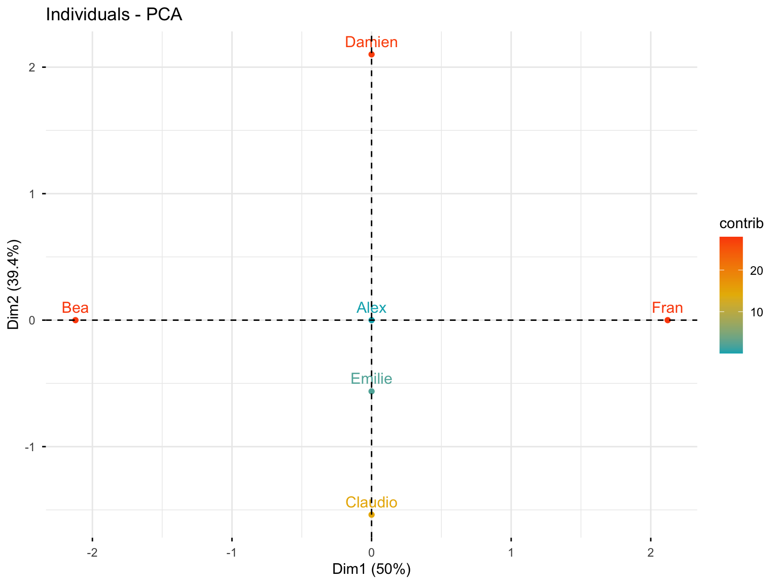 - Contributions of variables and individuals